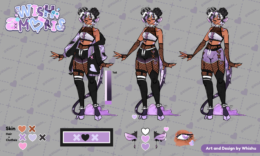 I am a graduated animation student who took on the passion for managing my shop “Whishu” and creating merch of my original characters.My art reflects me as an artist, my love for fashion, filling a sketchbook page, and seeing my representation in the scene of conventions.Im also the creator of the OCs that you can find in my digital store and convention. More info here!